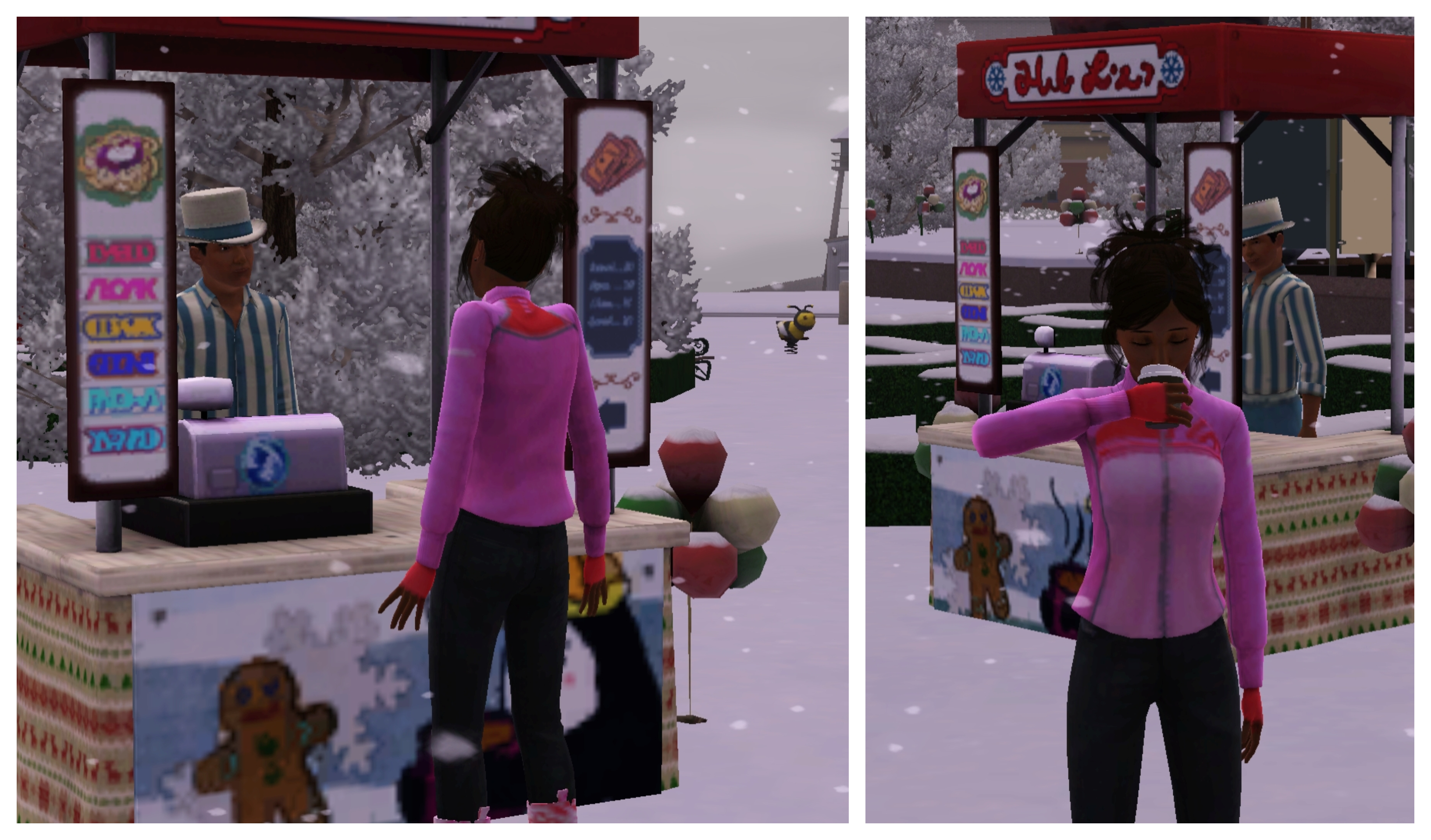 Claire takes a break from playing so she can grab a cup of hot chocolate. Yum. The warmth spreads through her insides and brings feeling back to her slightly number fingers.