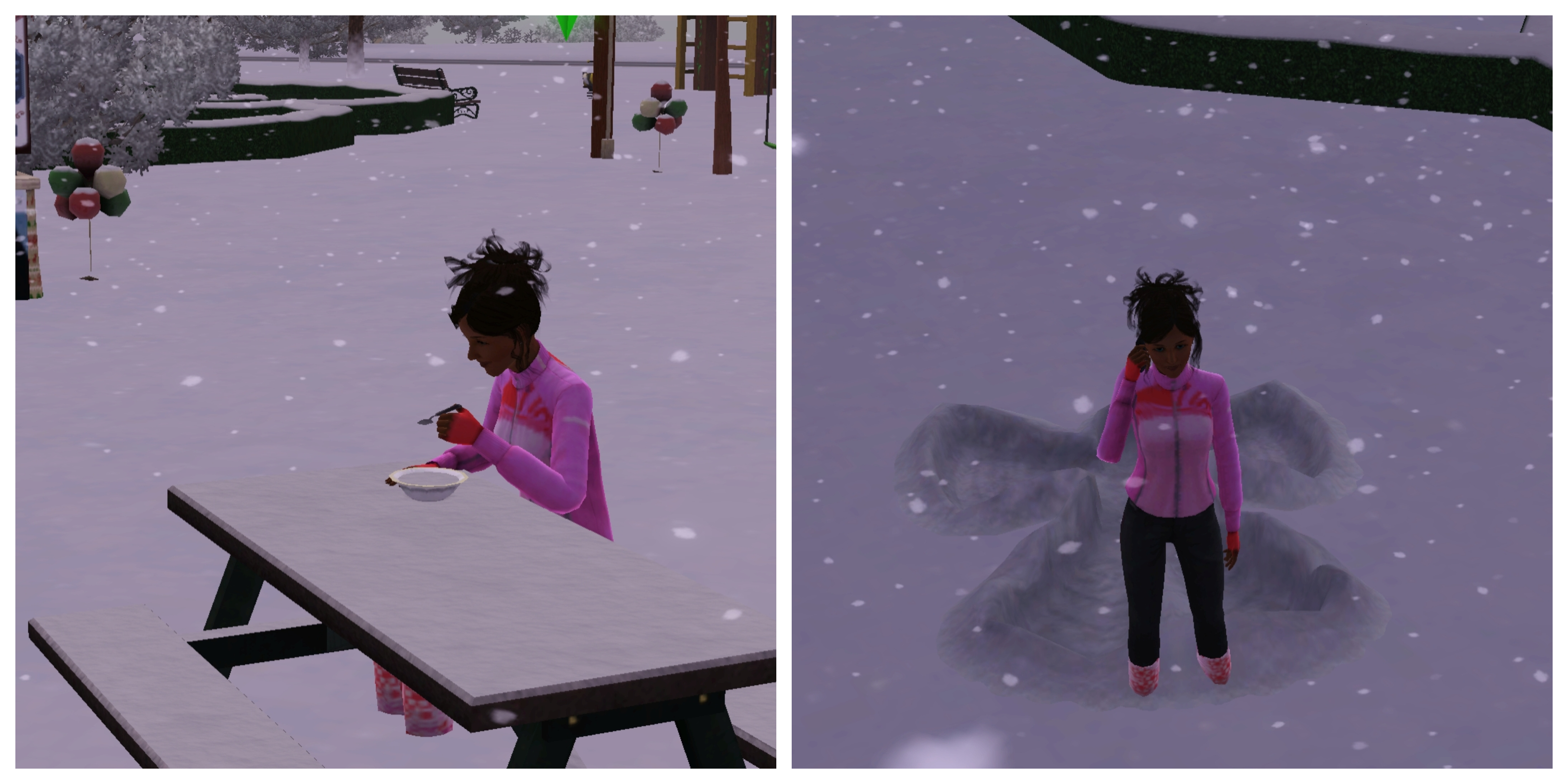 She then enjoys a bowl of clam chowder and making a snow angel while she waits for the others to join her. Her fun is interrupted when she gets a call.