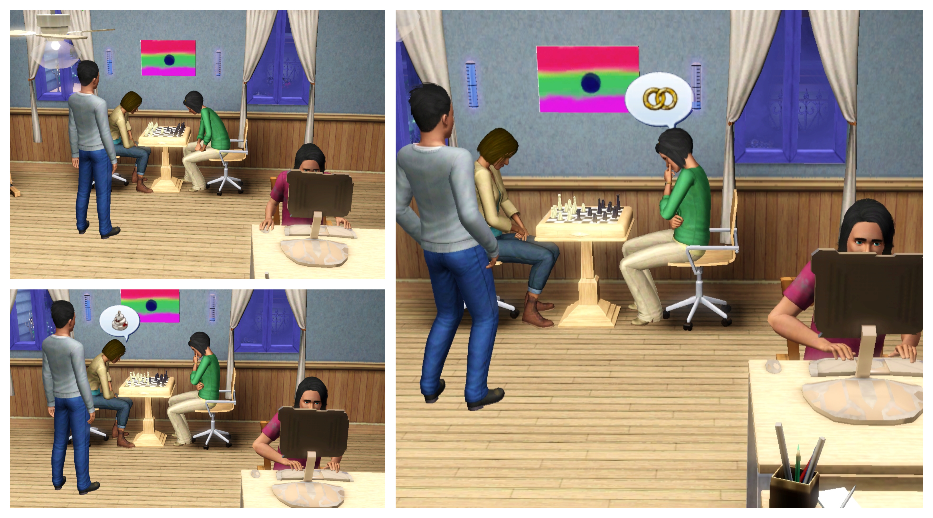 Ben also has a lot on his mind. They might be at a relative’s party but he seeks a quiet spot for a chat with his wife.