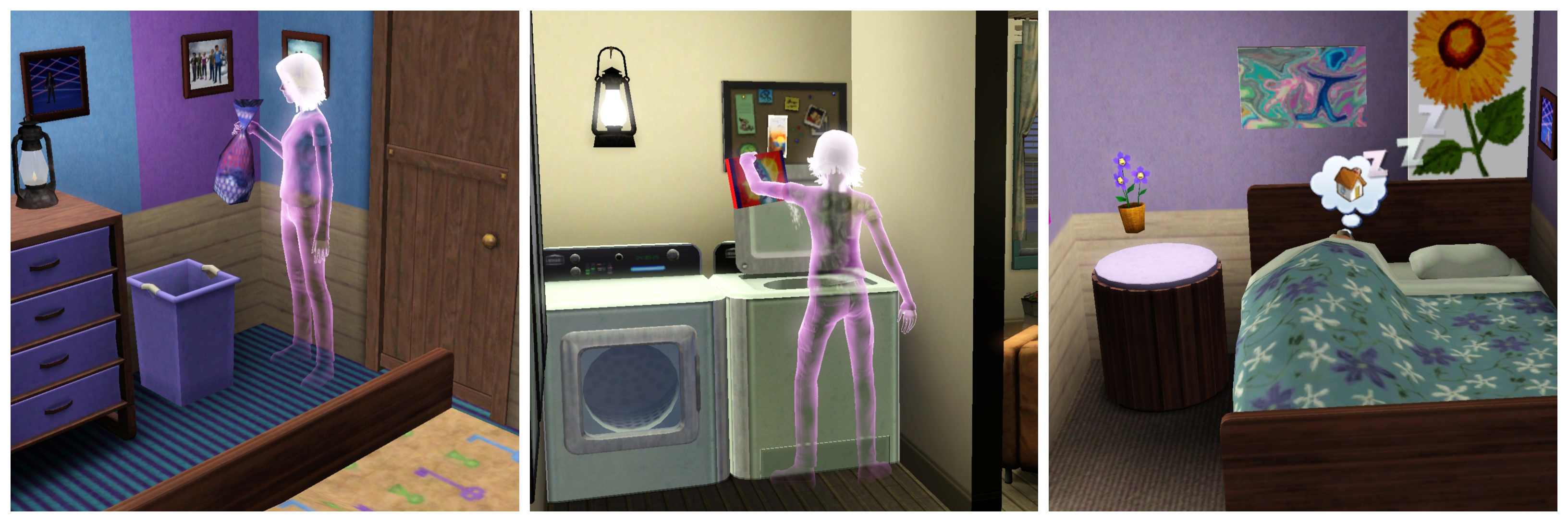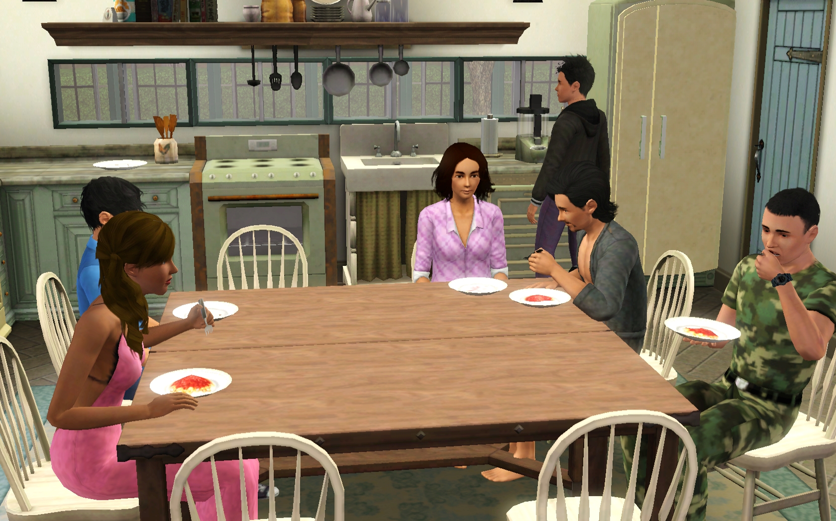 (Addy’s Note: Jolene attacked Ghost Lucy! Seeing the thought bubble, I expected to see something that could be used as a girlfriend approval moment but … nope … this happened. The entire family booed or heckled Jolene afterward. None of this was controlled or planned and definitely surprised me. These sims!)