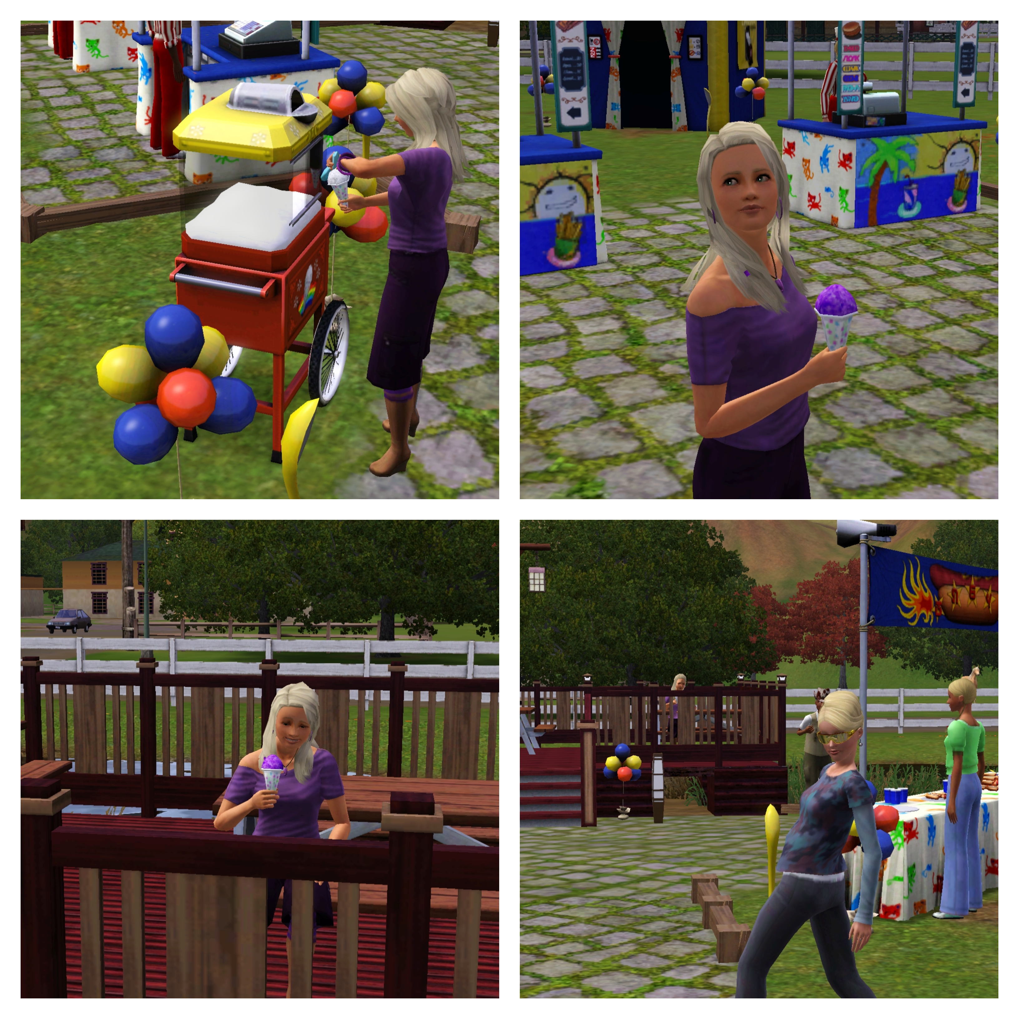 Oooh, a snow cone sounds like the perfect treat when weather and moods are warm. Abigail chooses the picnic table nearest the railing in the hopes that she won’t be seen and her timing is perfect, too. A pregnant Imogen Pelly “sails” from vendor to vendor in the hopes of scoring attention and perhaps a discount.