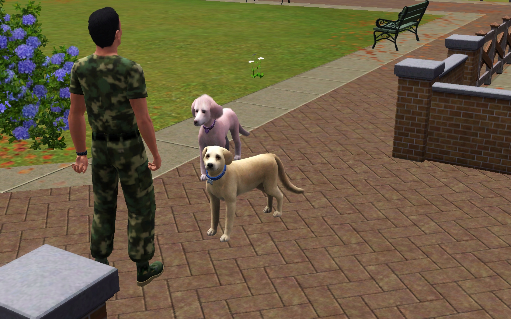 I can understand why Sarge is looking away from Pantoufle. The sim who dyed that poor dog and slapped him with such a silly name should seek therapy!
