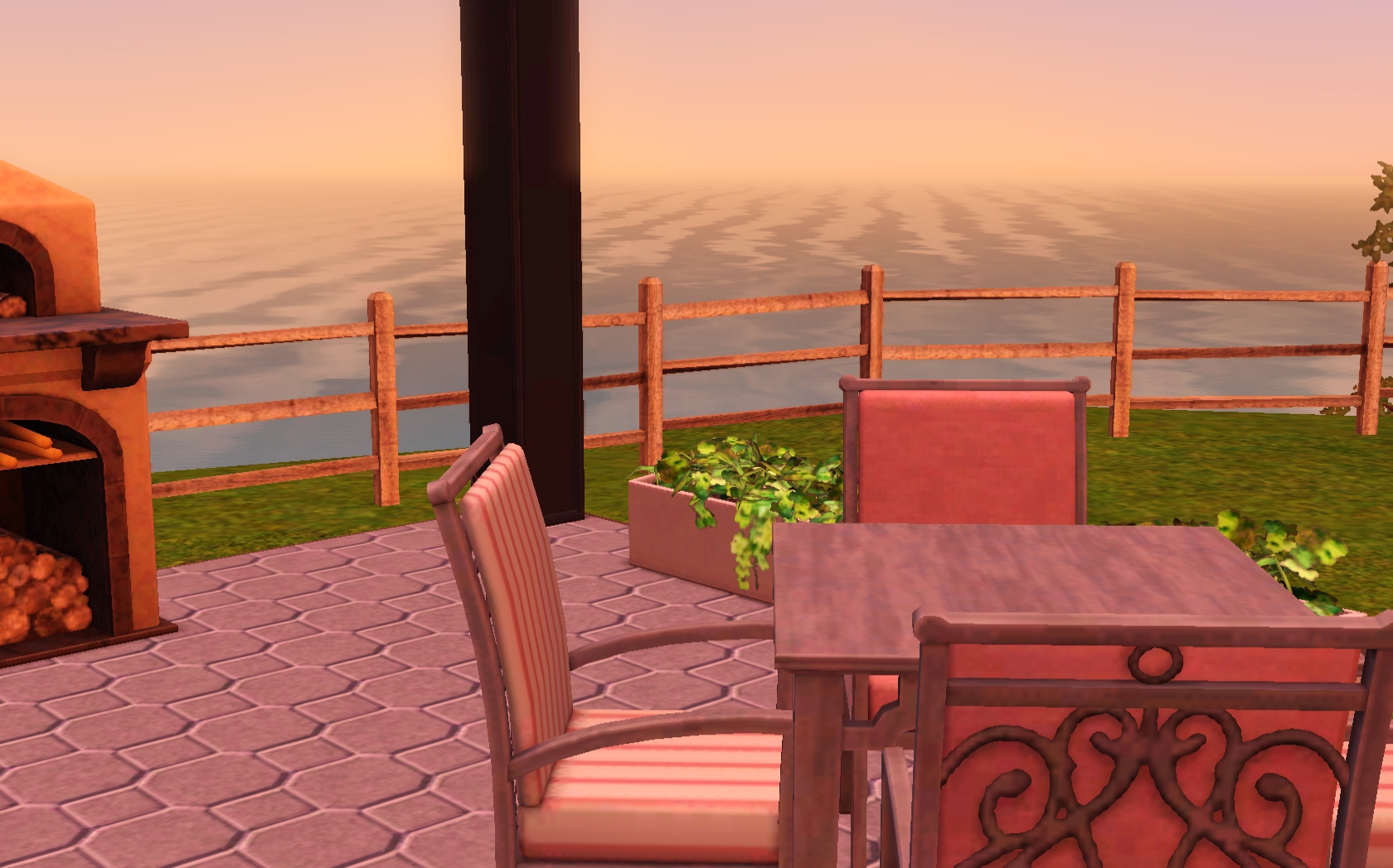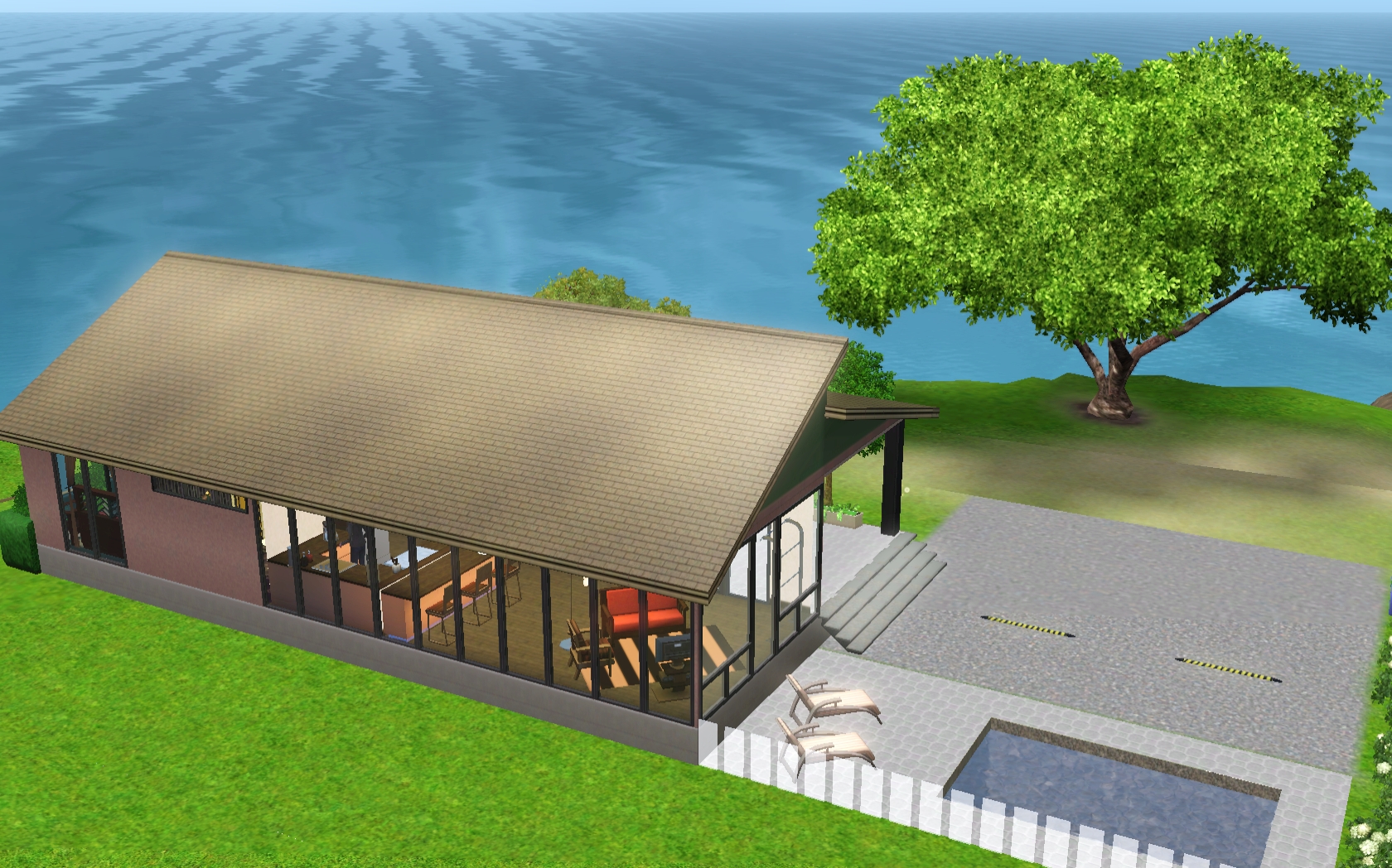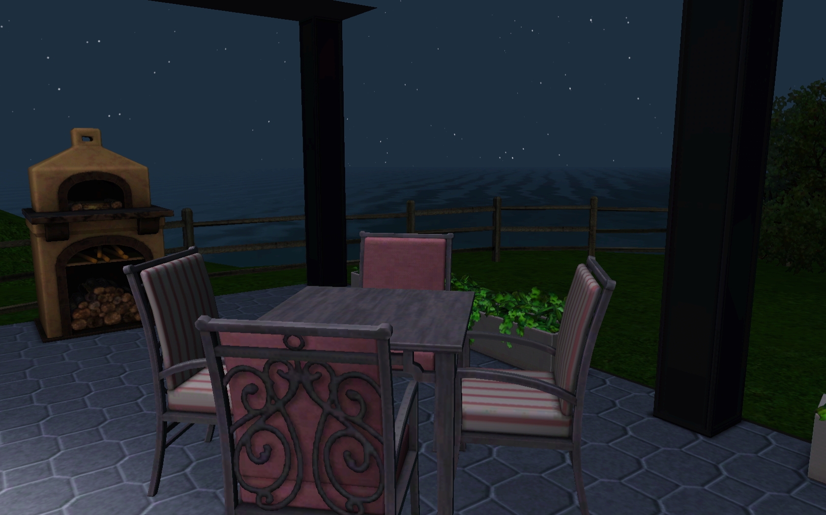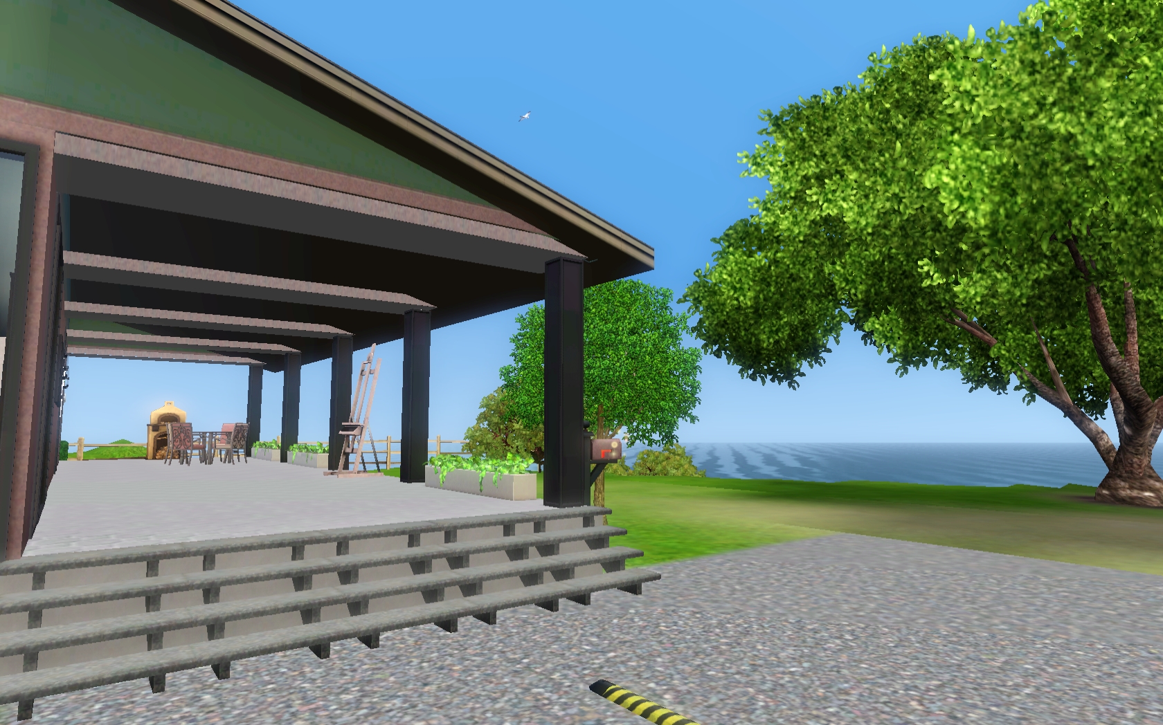 Love the way you did the roof line, and that you have just nice outdoor seating and a wood-burning oven! I also love the wood floors, all the greenery, and the nice pool area! I’m going to have to make a Partridge and move the sim in so I can have a Partridge and a pear tree.