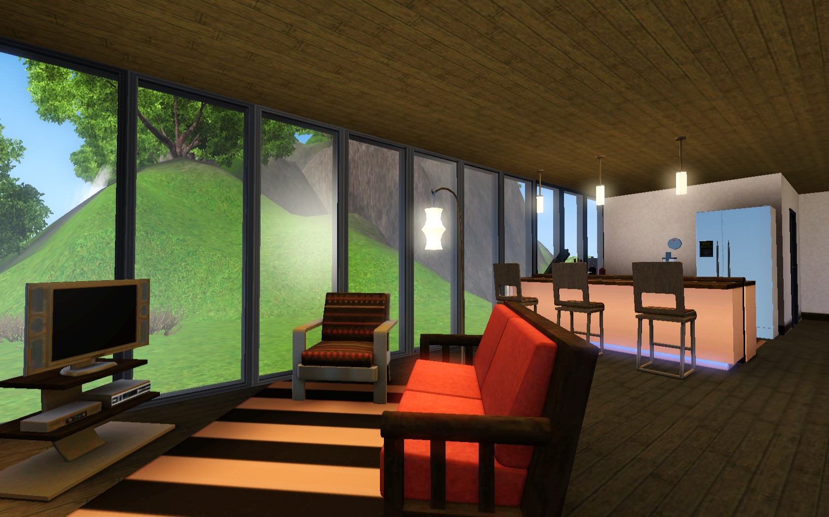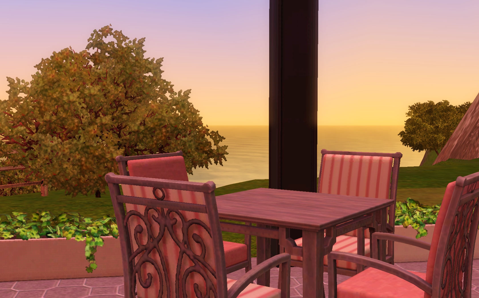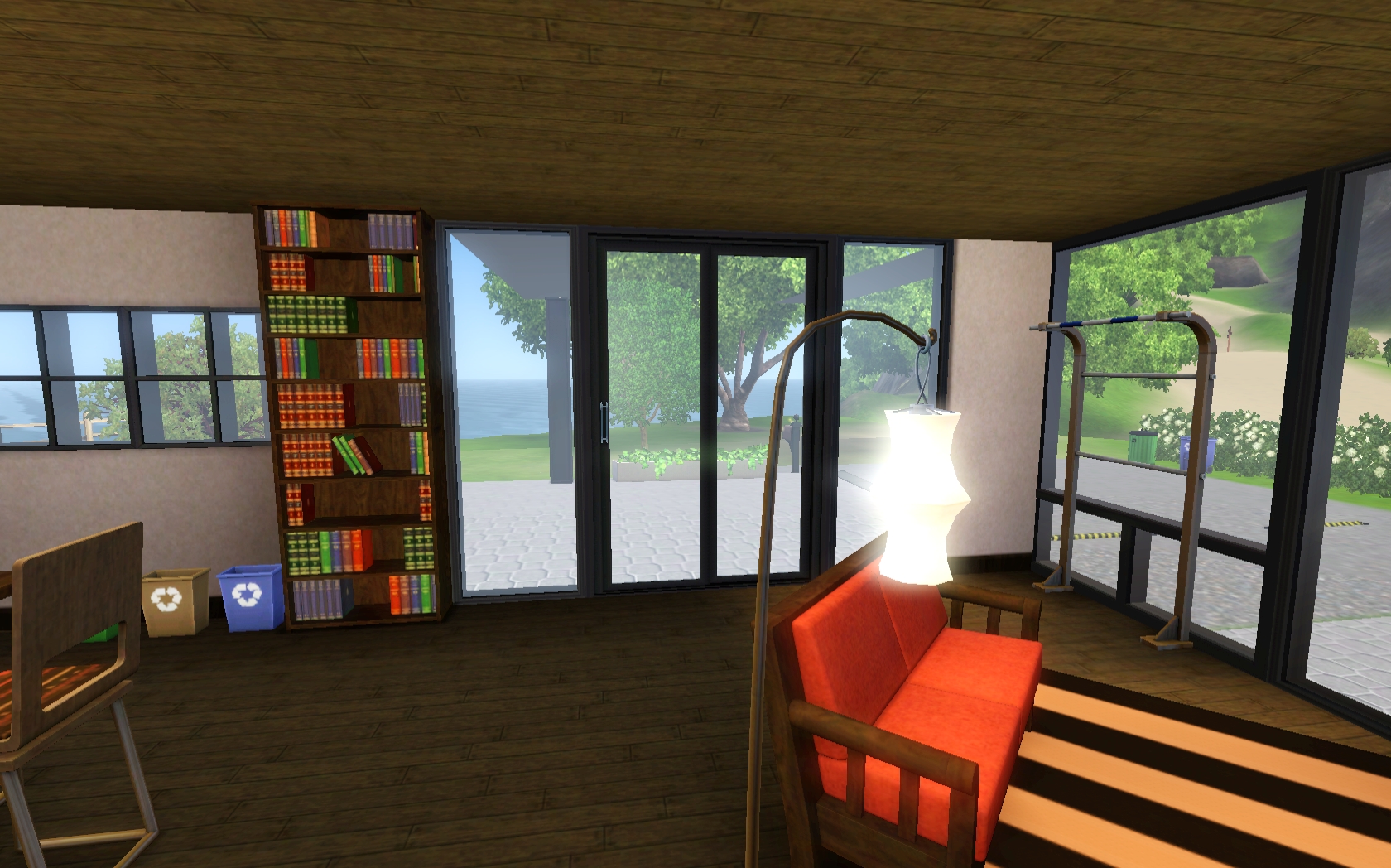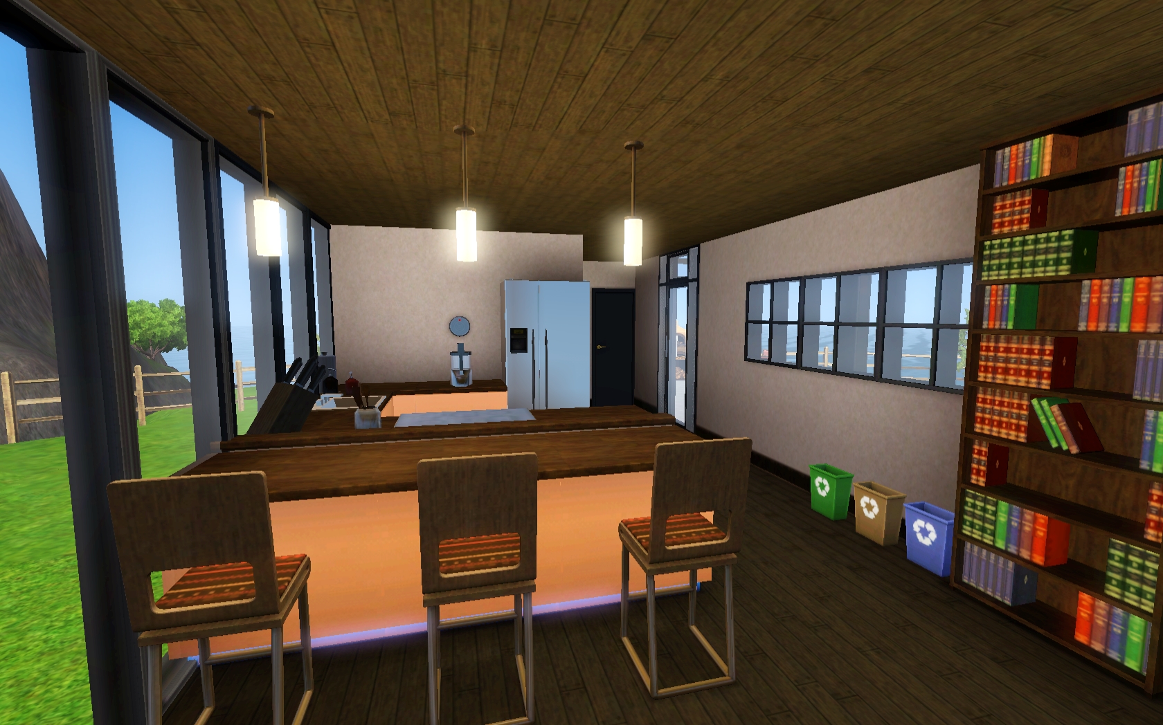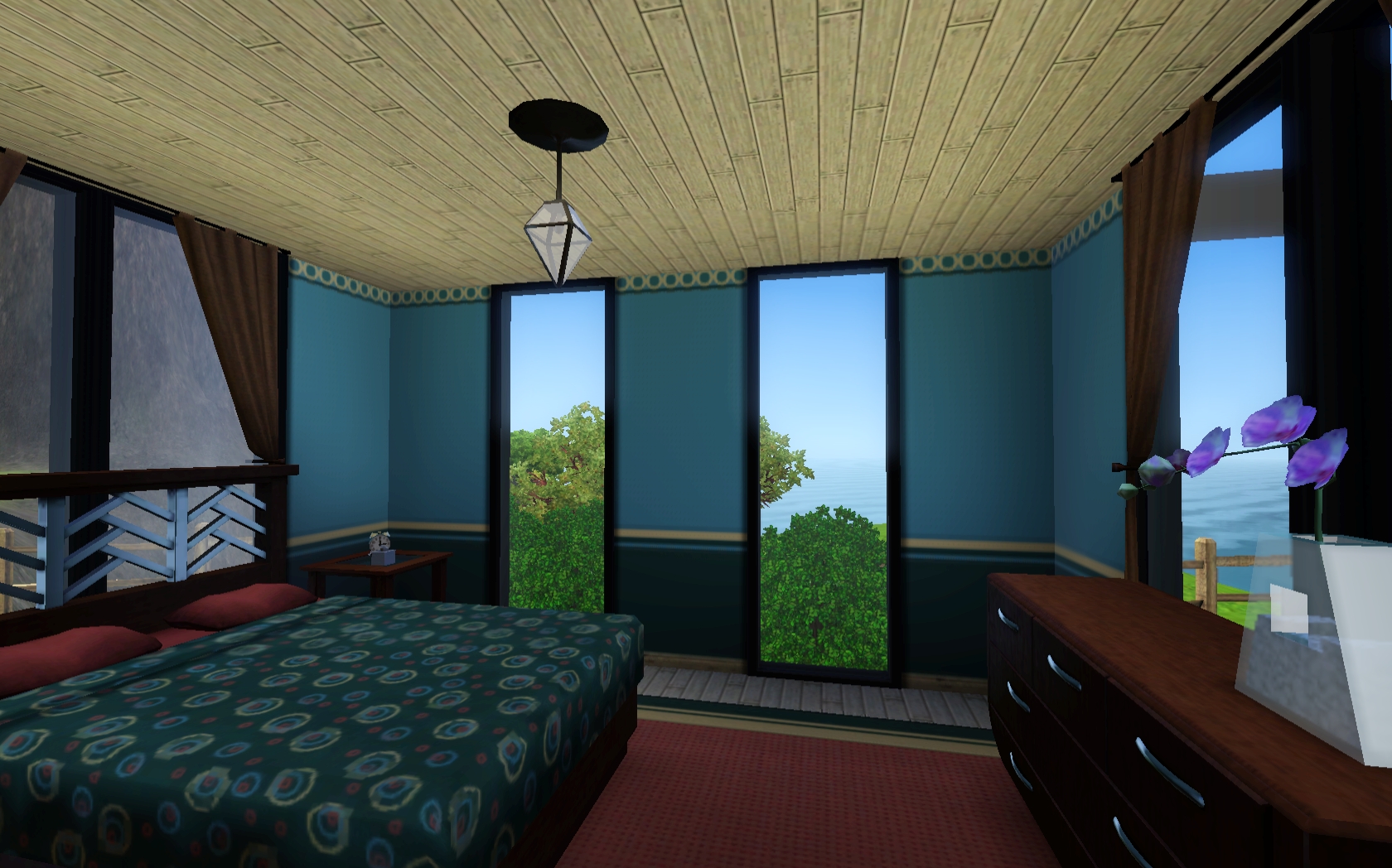 Love the way you did the roof line, and that you have just nice outdoor seating and a wood-burning oven! I also love the wood floors, all the greenery, and the nice pool area! I’m going to have to make a Partridge and move the sim in so I can have a Partridge and a pear tree.