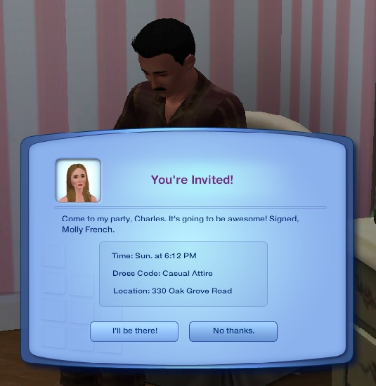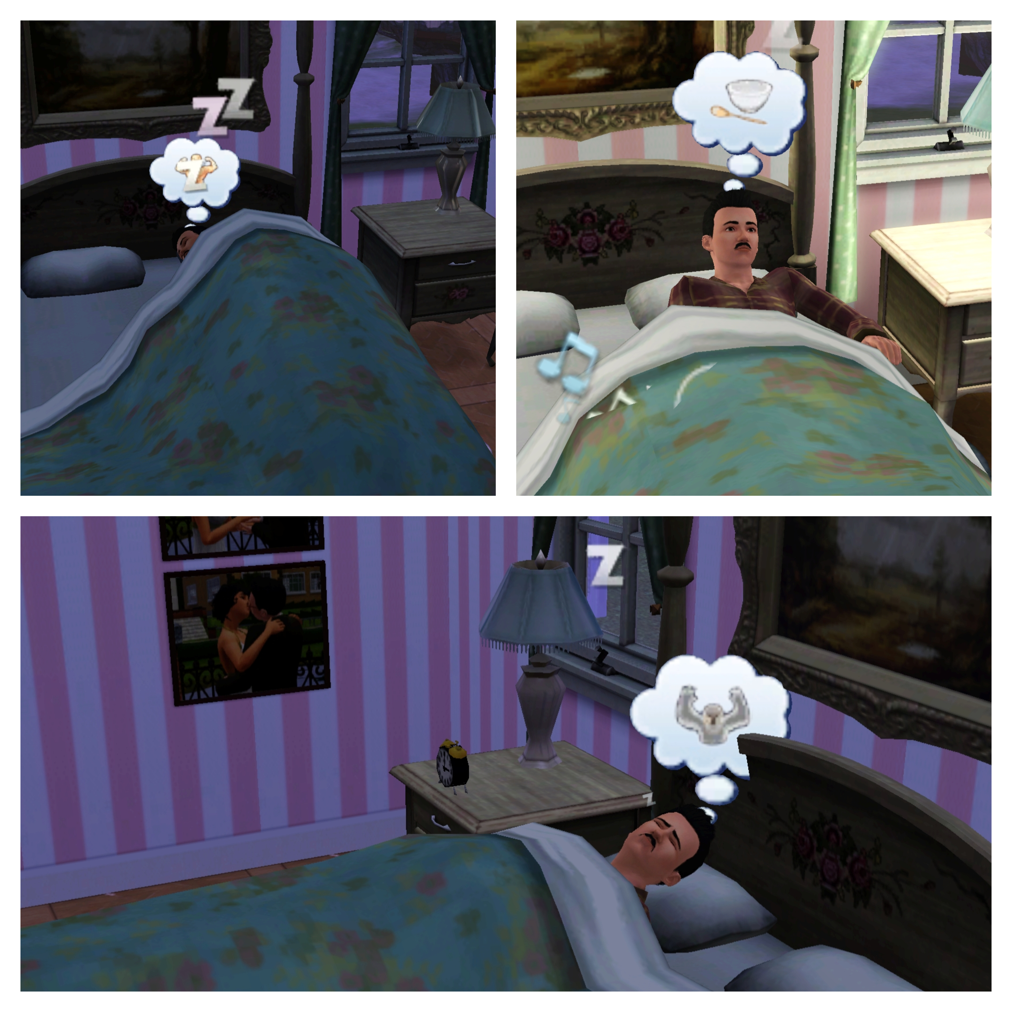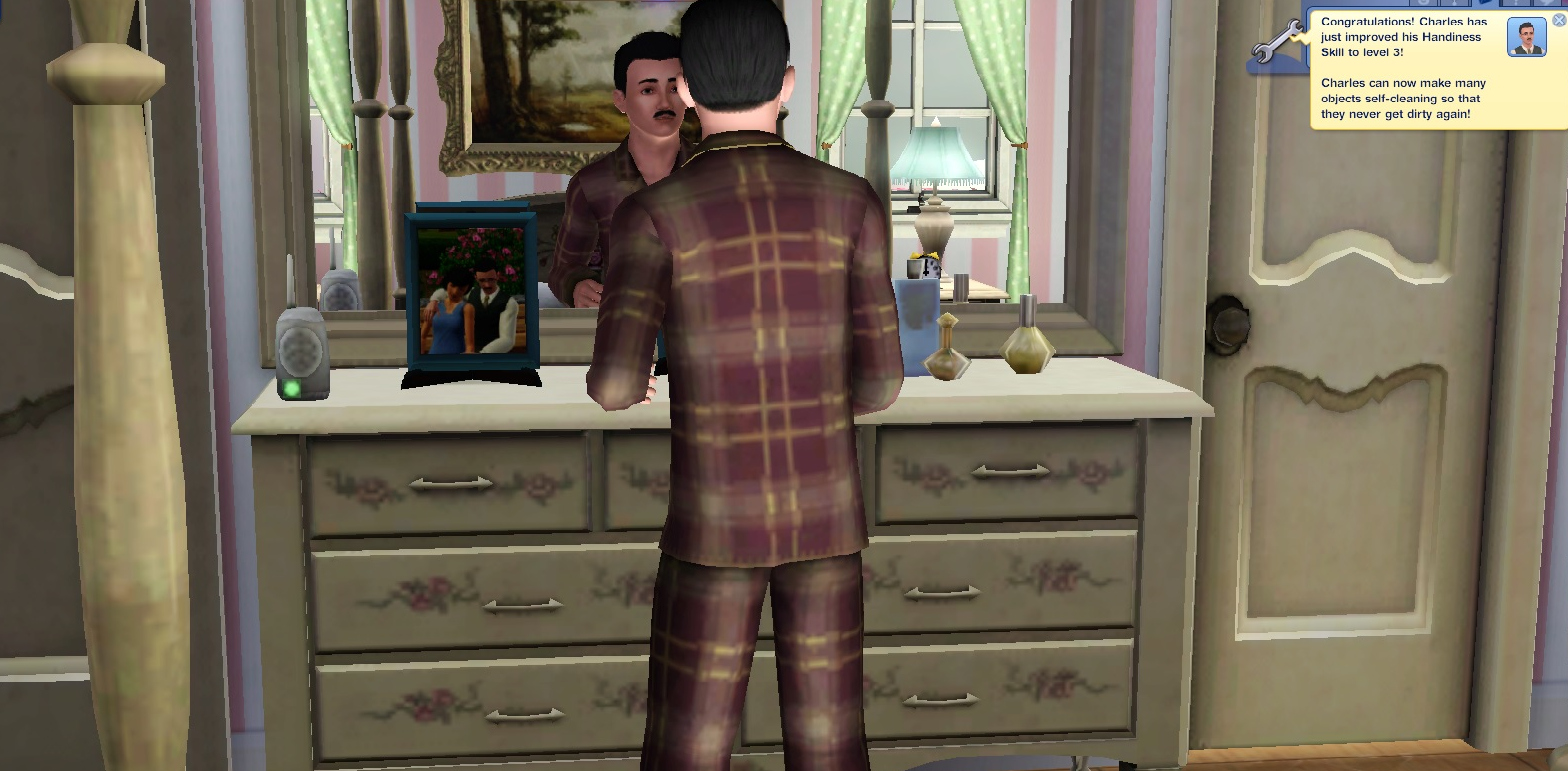 Charles snuggles back under the covers and hopes there won’t be too much gossip over his decision to let Becky and her son, Topher, stay with him. She is unmarried after all and some sims enjoy hearing things through the sim-vine a little too much!