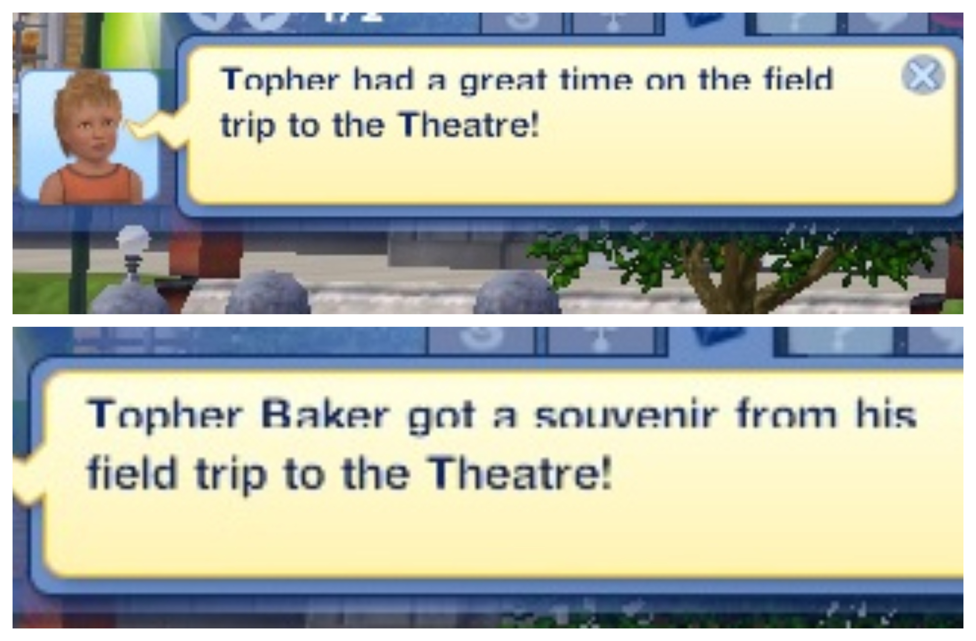 At that moment, Topher comes running up excitedly chatting about his field trip to the Wilsonoff Community Theatre.