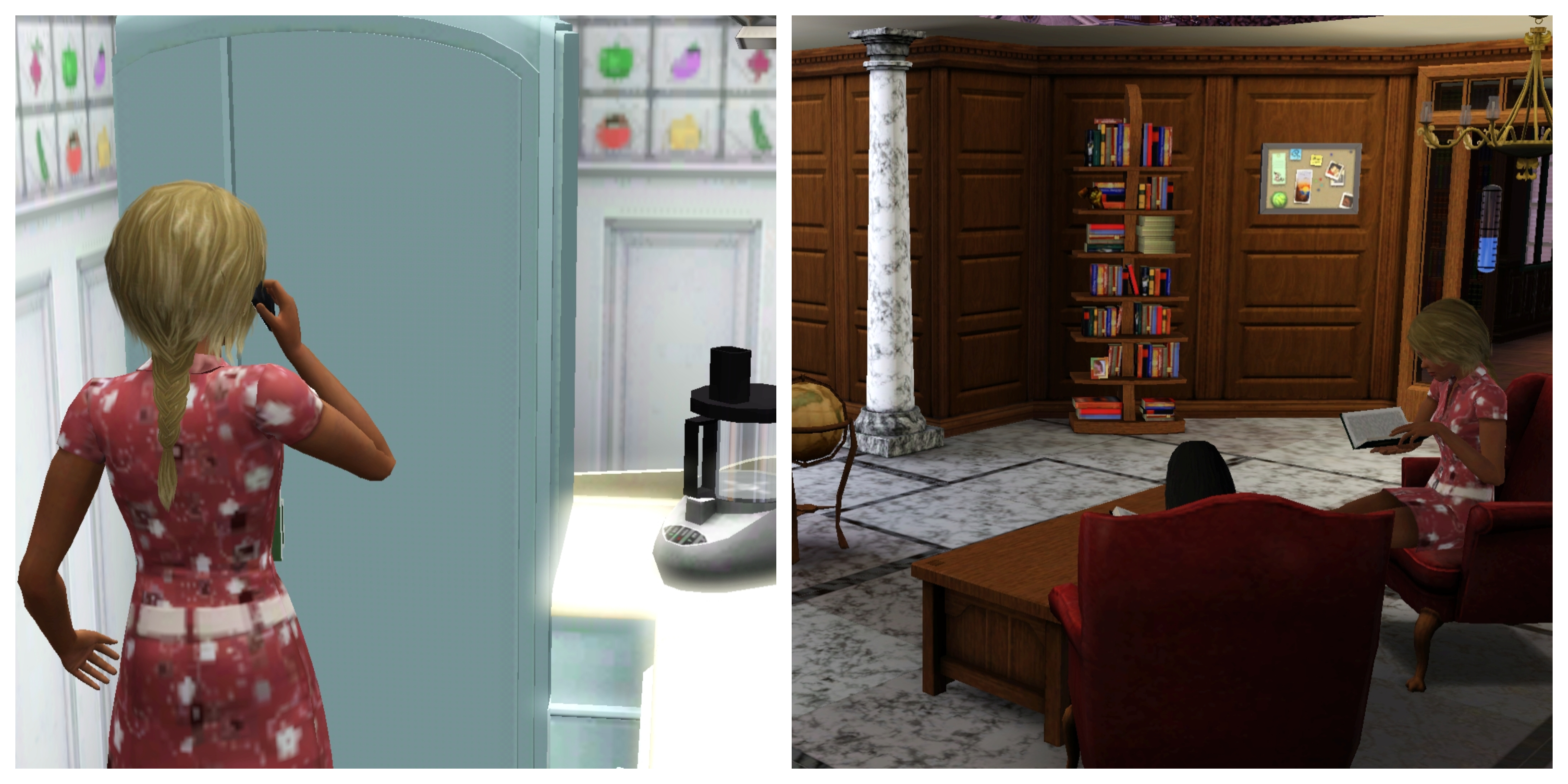 Topher builds a castle with blocks to distract himself while he waits. Oh, dear! Becky feels like crying when she gazes at the burnt cookies.