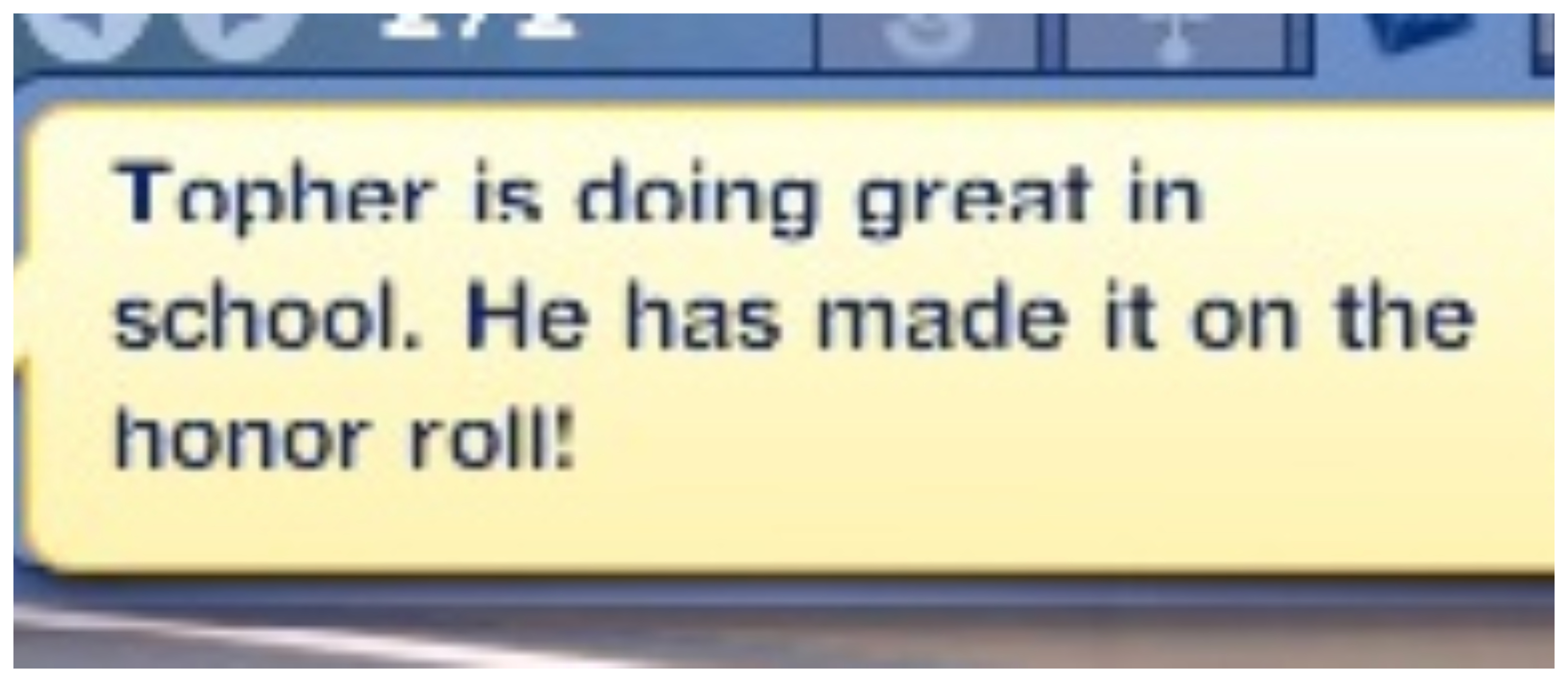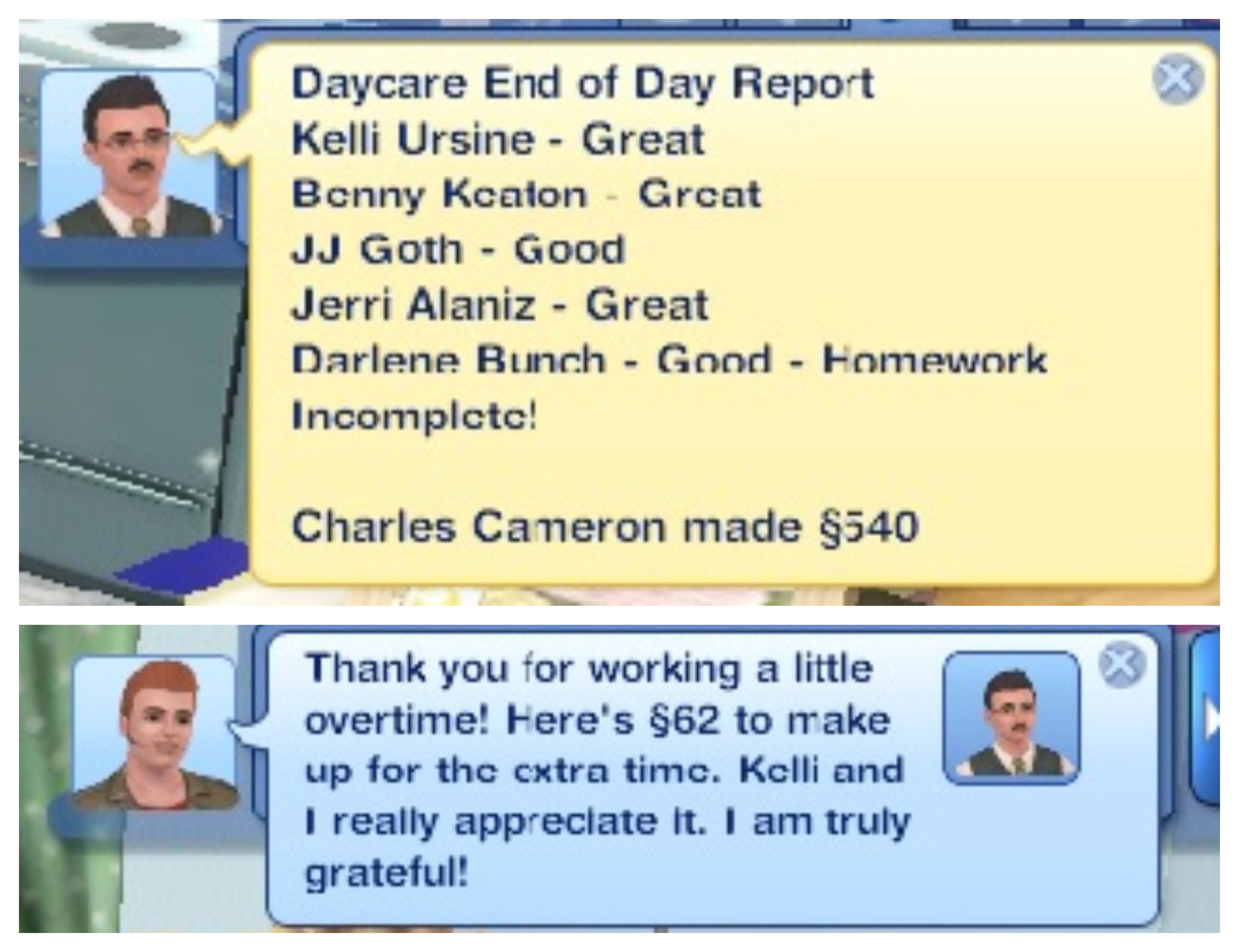 Addy’s Note: As soon as homework was done, there was a script error and Nraas sent Darlene home … resulting in the game not acknowledging her homework progress. A bit annoying.