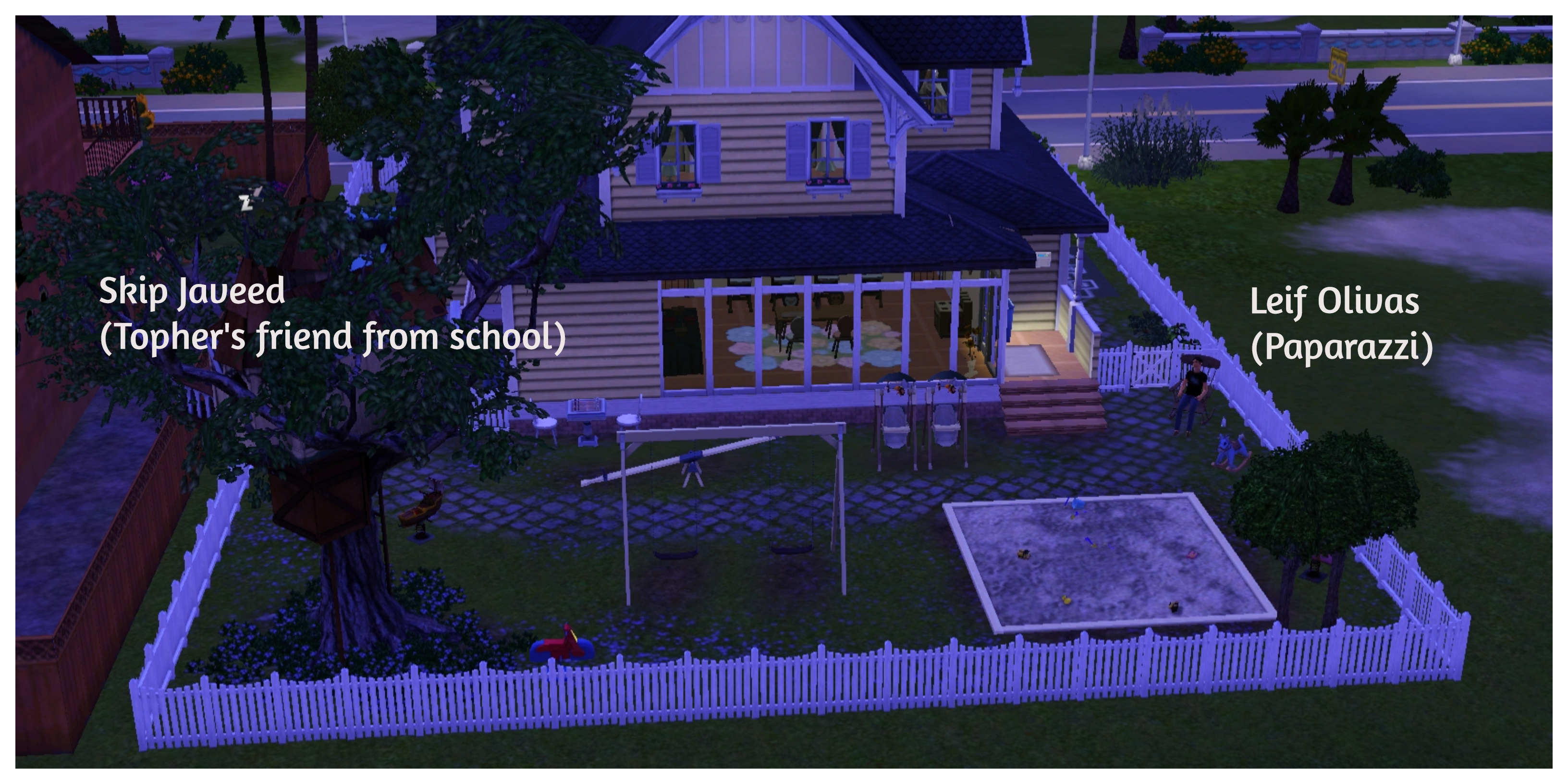 Charles might not be so relaxed if he knew that a classmate of Topher’s is sleeping in the treehouse and the paparazzi entered the backyard (again!) in order to sleep in the rocking chair.