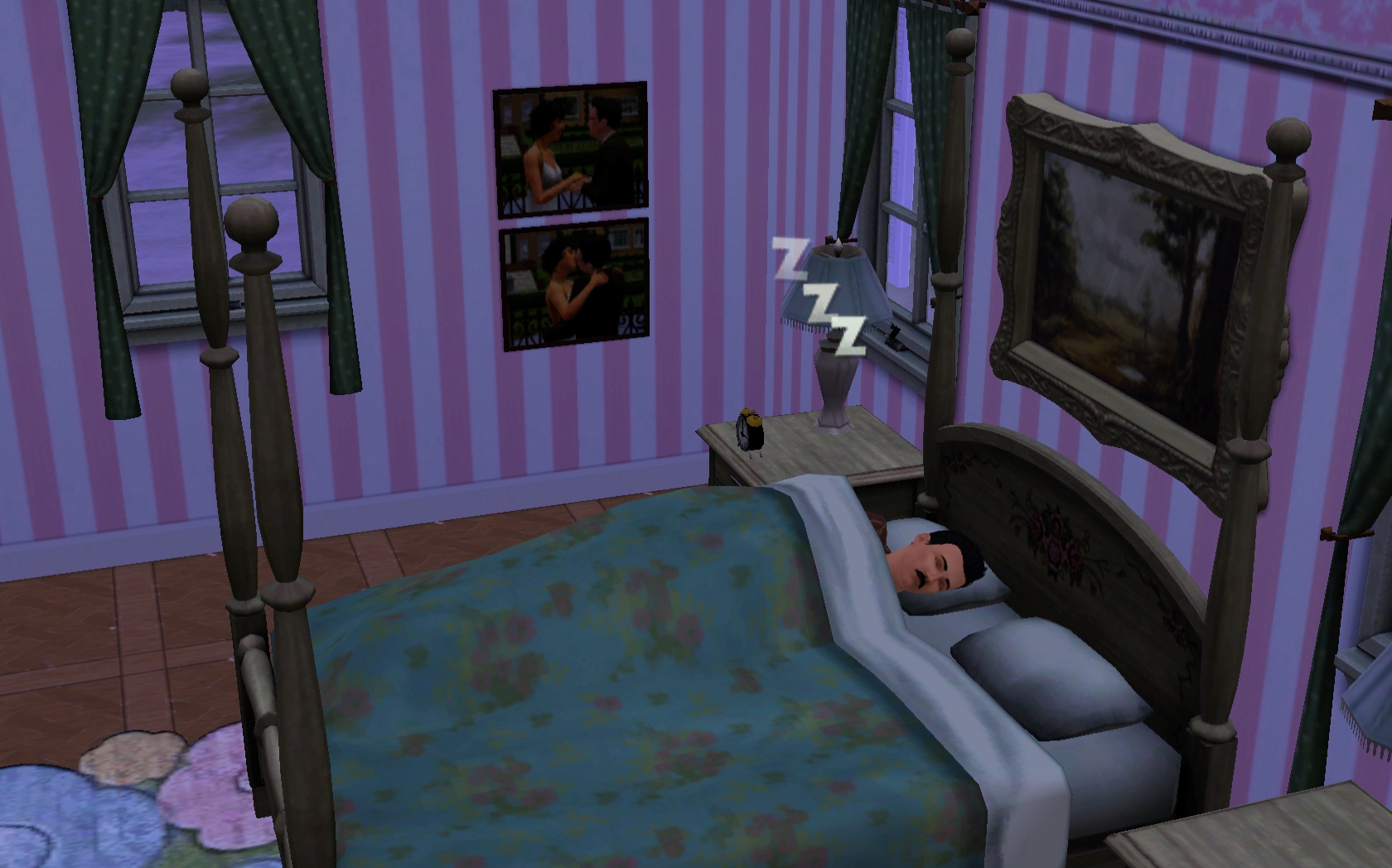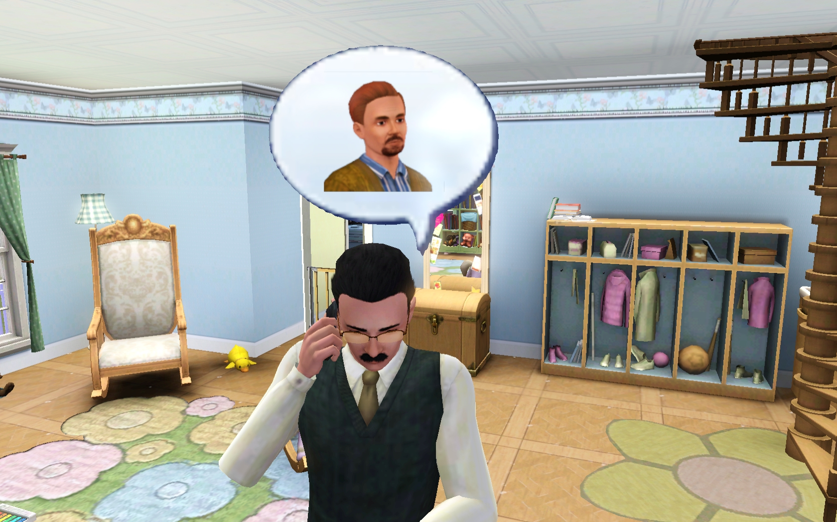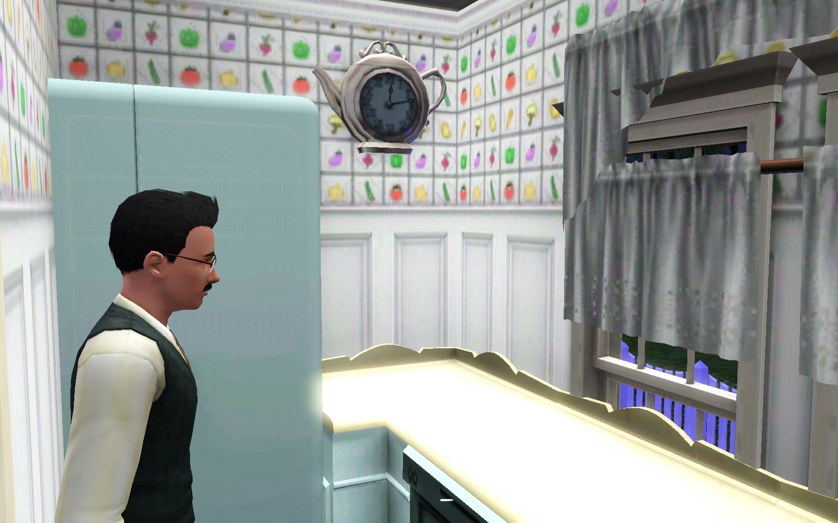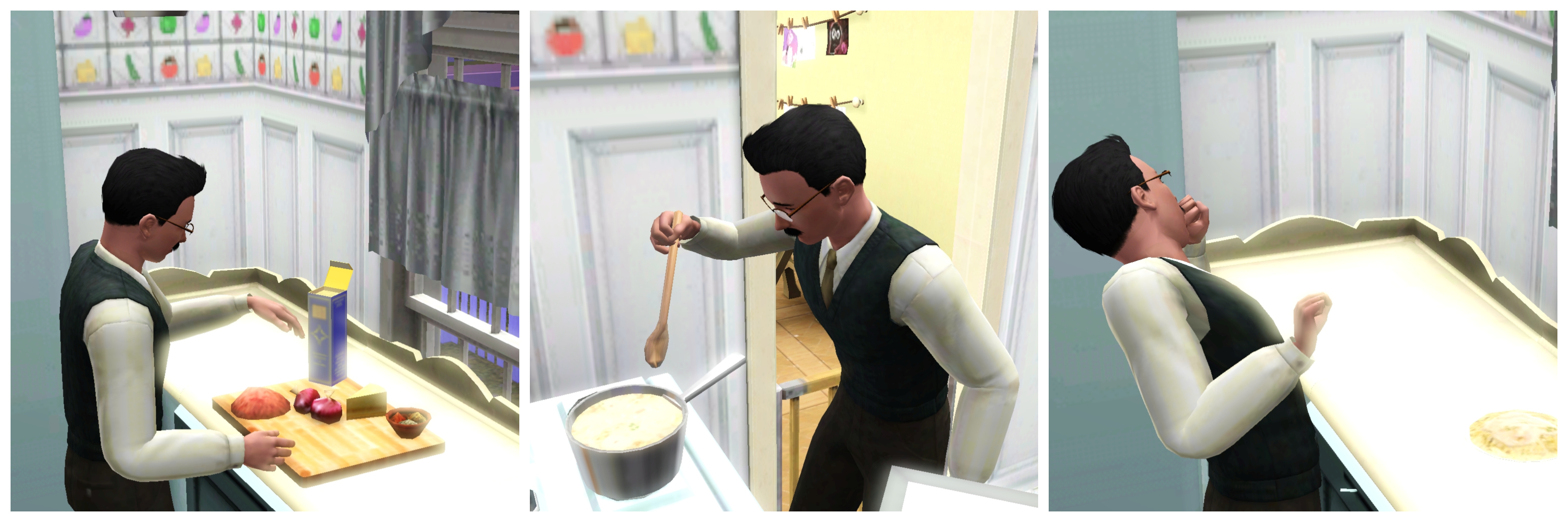 Charles wakes and heads out to the garden. Obviously, he has a lot on his mind and doesn’t notice that he dressed in his work uniform on a day off! A few plants need replacing and by the time he is done, a bath is next on his list. “Charles, my good man, you positively reek!” After bathing, he cleans the tub and tackles a few other chores before taking a brief break. Brief … Zzzzz ….