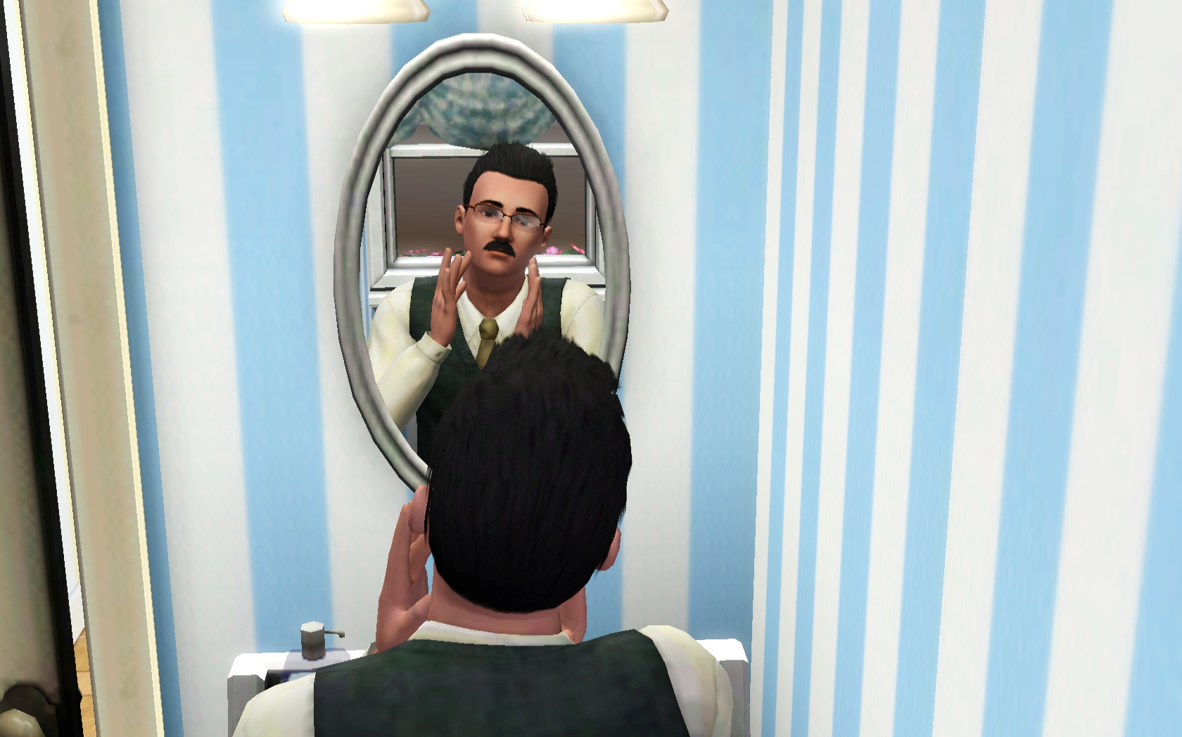 Charles readies himself for the day and discovers that his mustache has filled in. He’s not sure if he likes the new look but opts to give it a quick trim and go about his day before deciding whether to keep it as is or not.