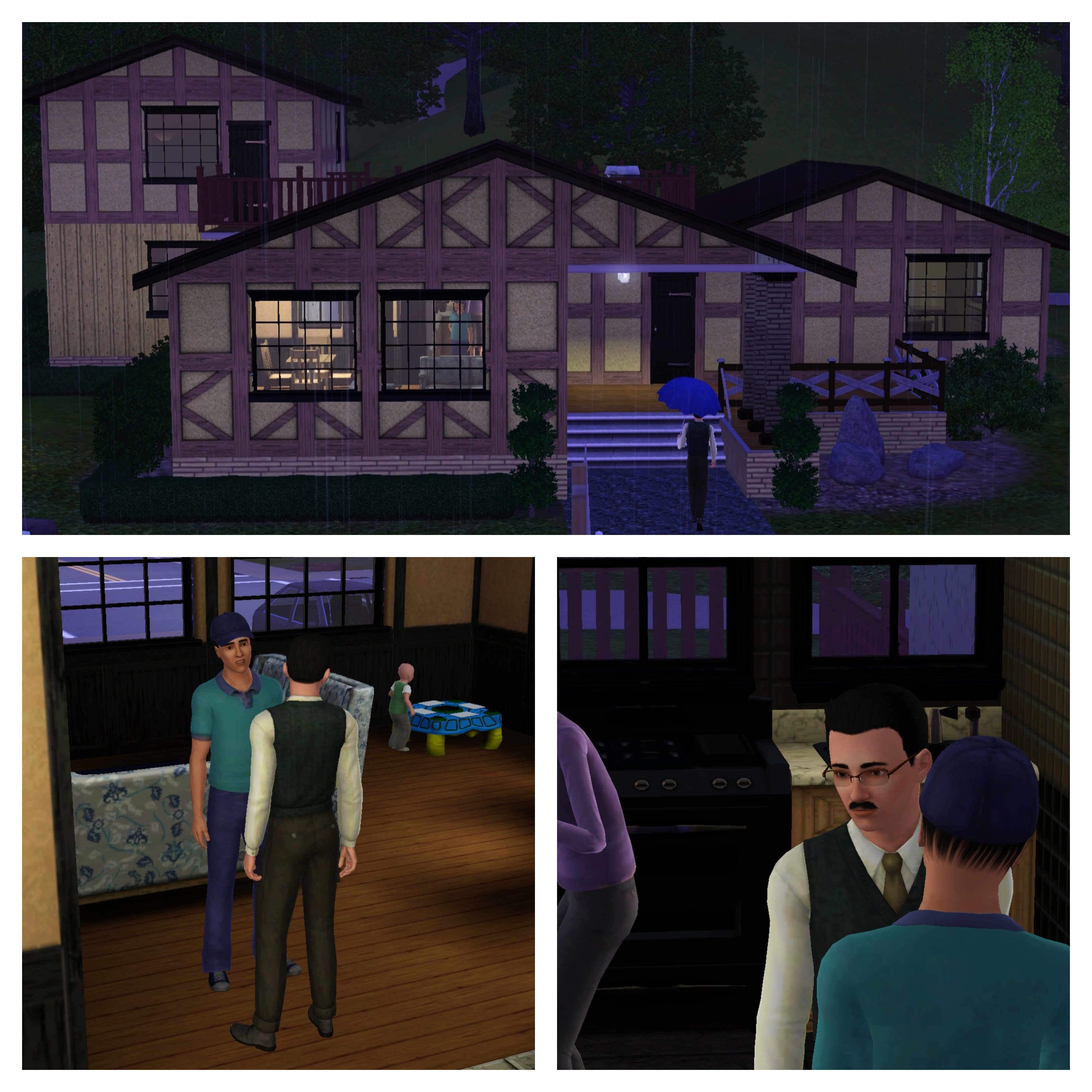 As soon as the rain lightens, Charles decides to make a few house calls. First on his list is the French/McIrish home but no one answers the door. “Oh, dear. I hope Sandi is adequately covered and won’t catch a cold as a result of their outing.”