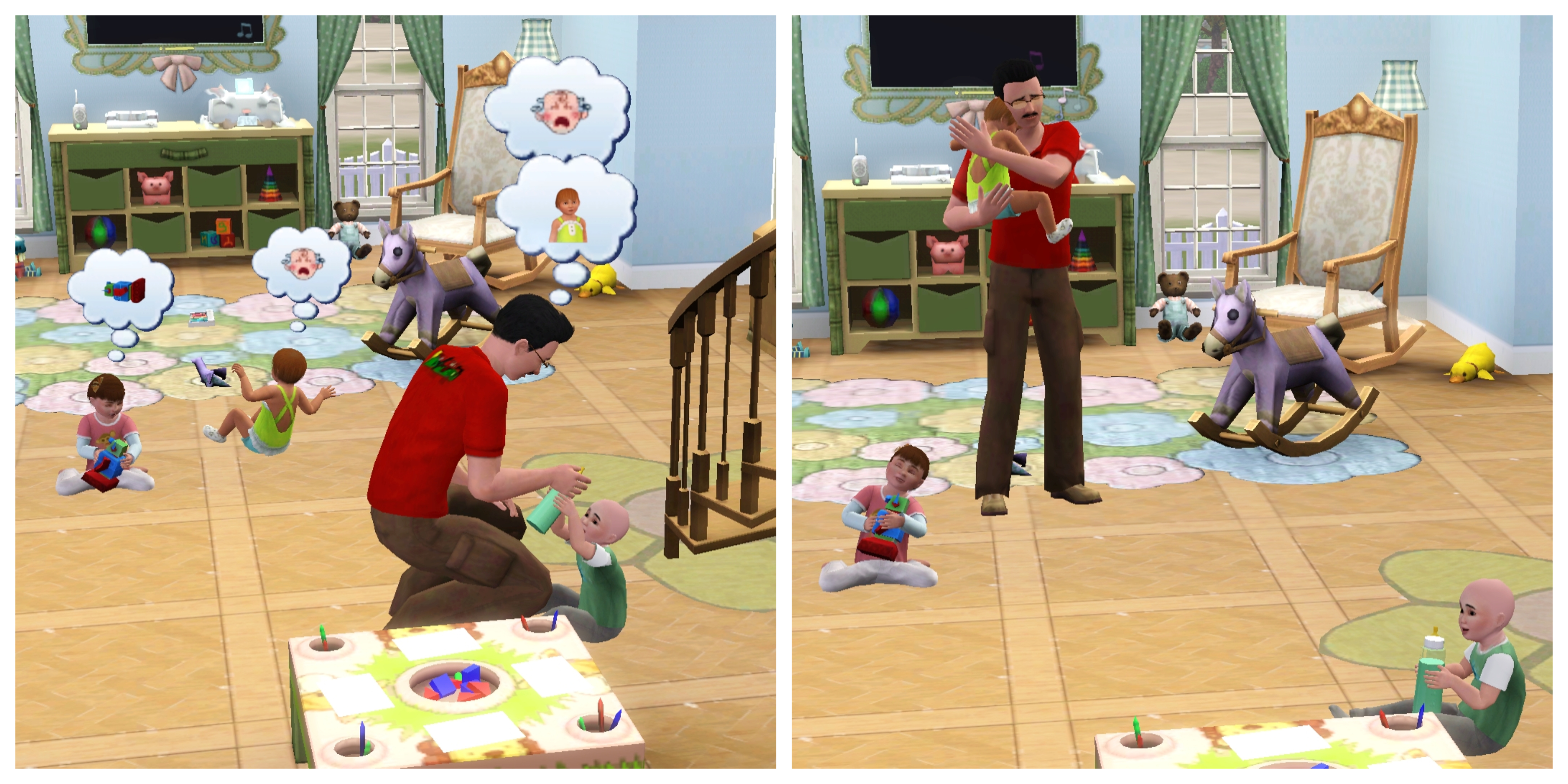 2. At least the game created a family for you to have another child to watch, even if they didn’t move them in. There probably wasn’t a cheap enough place with a crib and beds for all. Sorry Sandi’s mood dropped out of the great zone.