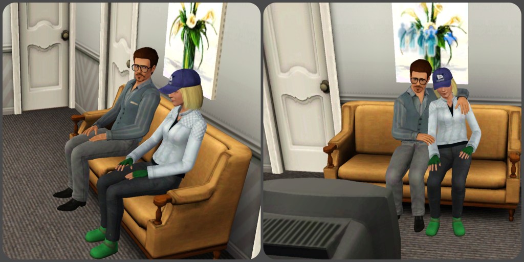Marci stops by after work and they decide to have a quiet night at home, watching TV and getting to know each other better.