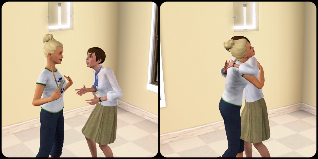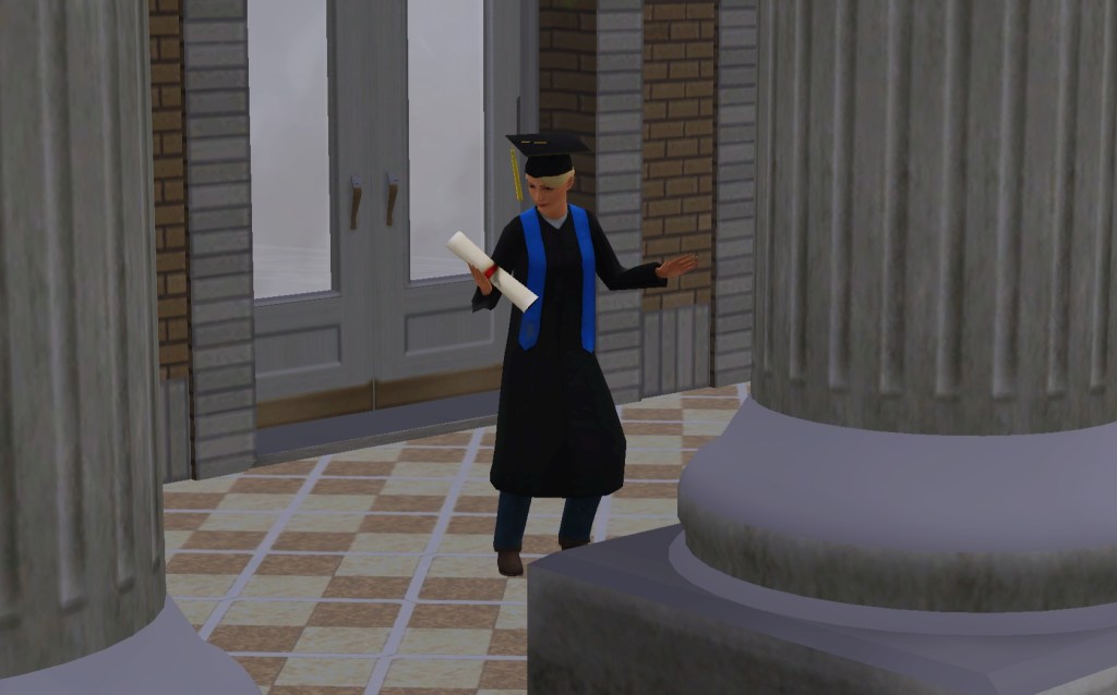 Congrats on graduation May super awesome. Awesomeness getting away with the prank May!! I love the little thought she had about Ice coming up with his on.. Its like 8 sims and they all hop into one taxi to head somewhere, you gotta love the irony in it.. May looks great in her cap and grown, Ice looks as though he can’t wait for his to be there and over, and a very proud father standing at her side! From what I read in that speech she is going go to awesome heights in the sim world, her adventures will be unlimited! I can see May going other ways than her other classmates went, but hey congrats to them also!! That was awesome of Ice to play her a song. Okay that was super awesome Tad gave her her moms camera, getting me all teary eyed here! Woot Woot May I knew you were going places, congrats on entering collage!! Wow those are some nice scores! Making the community safe is right up her alley, great career and will take her many places! She has an awesome head on her shoulders, and some full days of studying on her hands! Oh my I’m sure I’ve seen that sim somewhere before :D! Its sad about Dilly Buster, glad they still enjoyed their dinner. Wow Marci is really missing Tad to call so late! Oh I must be in the know on the career mod Addy please tell all! Thanks for sharing Addy I really enjoyed reading..