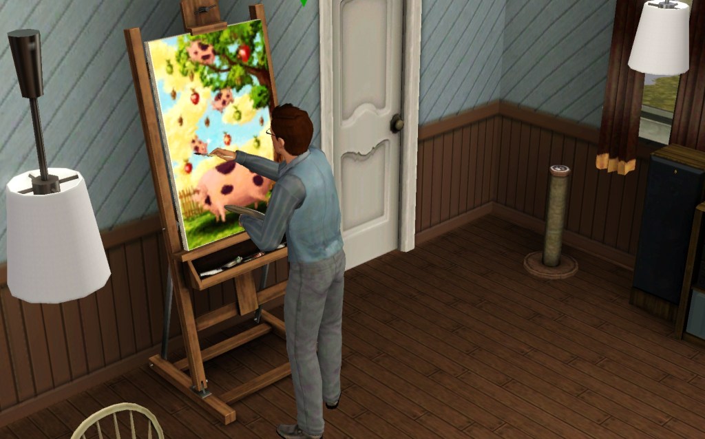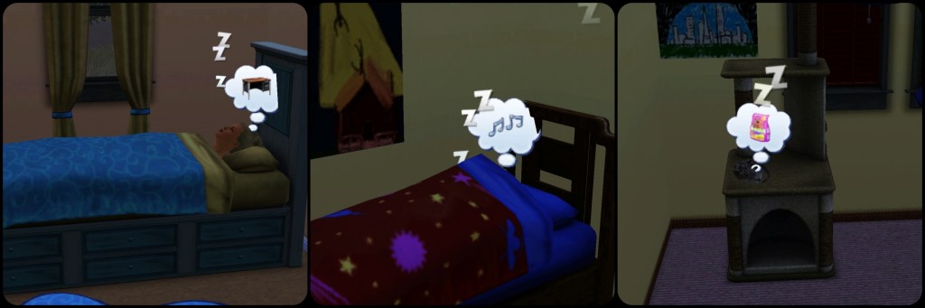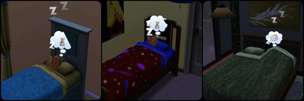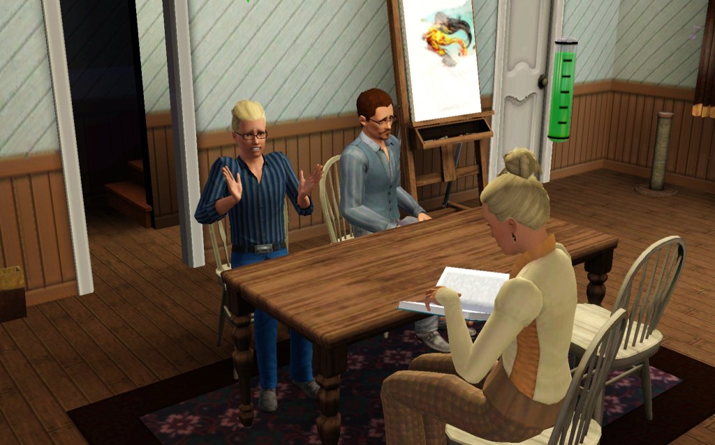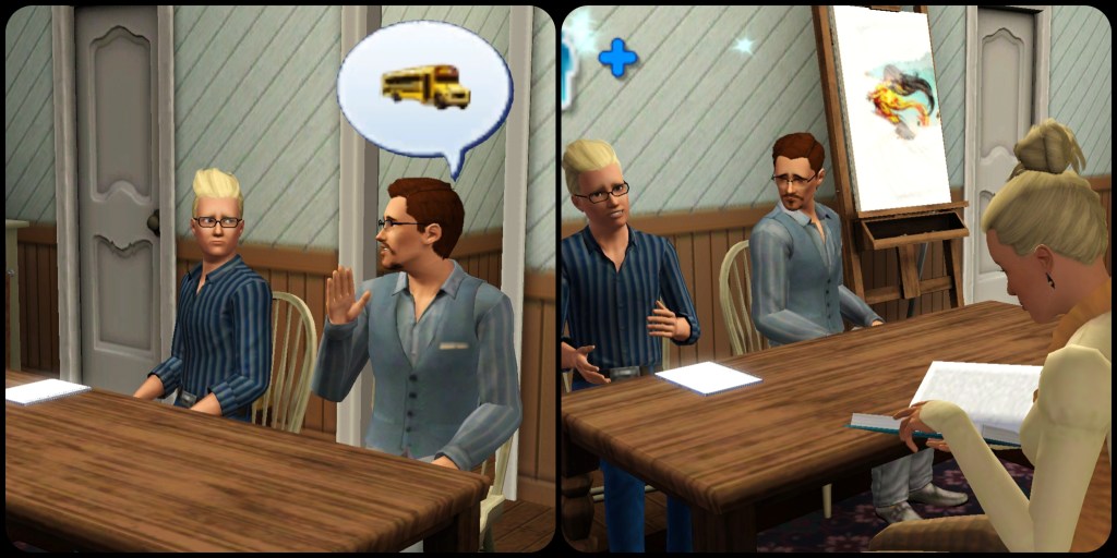 Zep is often on the minds of his family. Whether it’s because he is simply adorable or they want to paint his likeness depends upon the Sim.