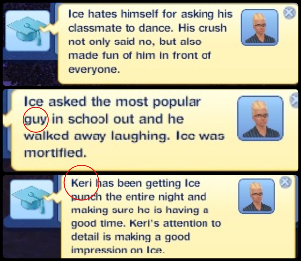2. Interesting chapter, I enjoyed learning more about May and Ice! I’m so sorry the Uni mod didn’t work as you hoped.. I wish the game itself had a college/live at home option, and that way your Sim could go to JC or a local Uni.. Congrats to Ice for becoming prom king, however, no prom queen was mentioned.. He had a memorable night, good thing Keri was nice to him..