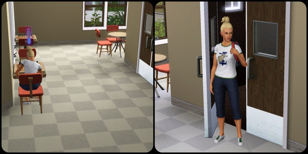 As soon as I opened the game, I noticed May was no longer enrolled in UNI. What?! I went back to an earlier save and made her re-enroll. She has a new schedule (same days/times but different classes/locations) so I purposefully kept an eye on her to make sure she stayed enrolled.